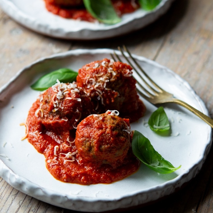 This recipe uses a 50/50 ground beef and ground pork. Pour the marinara into a large pot and bring to a simmer. First, the meat should include a mixture of ground beef and pork for ultimate flavor and the best texture. Mix in the baking soda and cheese. Bake the meatballs for 25 to 30 minutes, until lightly browned.
